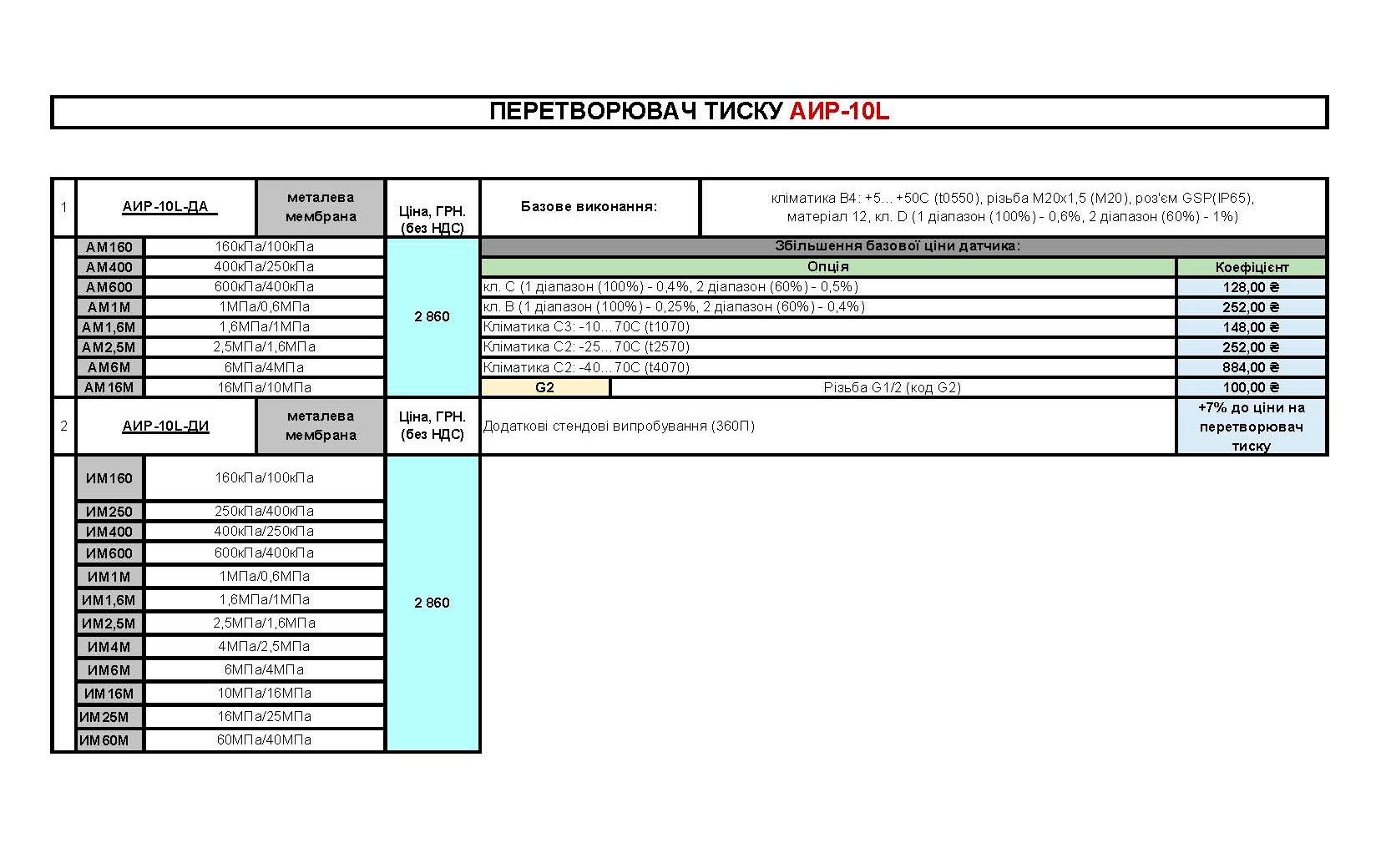 - абсолютное давление (ДА) - 100 кПа ... 6 МПа;